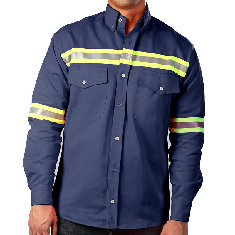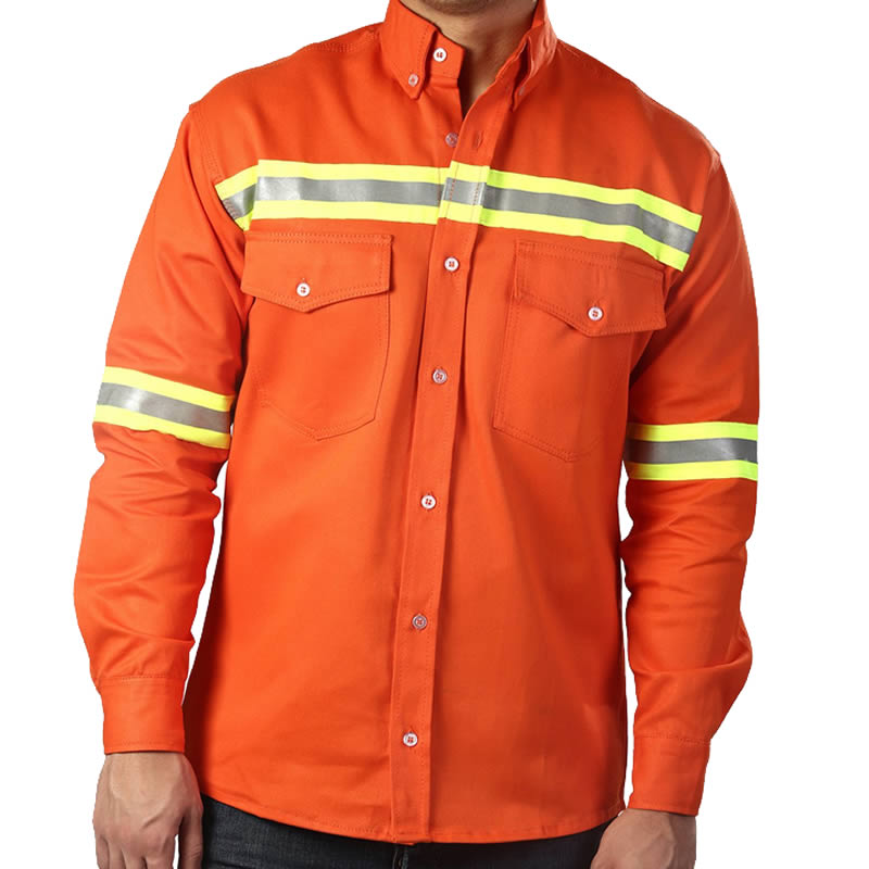 Camisa Algodon con reflectivo 240 gr/m2 Talles Azul: S, M, L, XL, 2XL, 3XL Talles Naranja: M, L, XL, 2XL