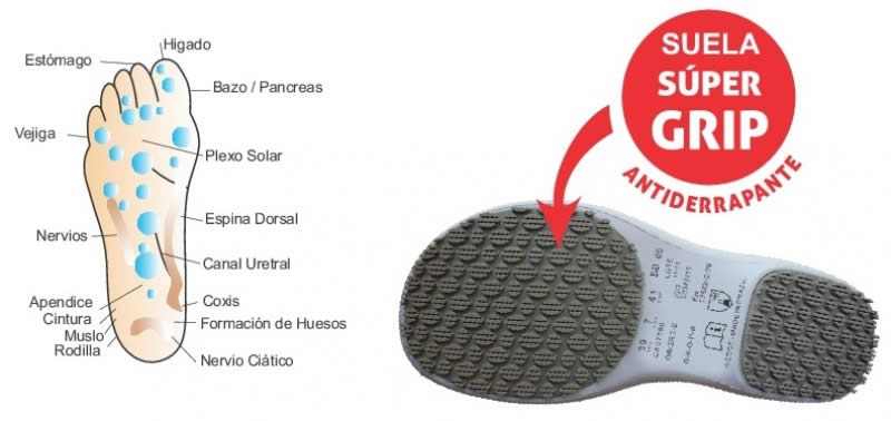 Calzado confeccionado en EVA, ergonómico y ortopédico, realizado con materiales de excelente calidad , con suela de goma antiderrapante, con absorción de energía en el área del talón, resistente al aceite combustible y al detergente.