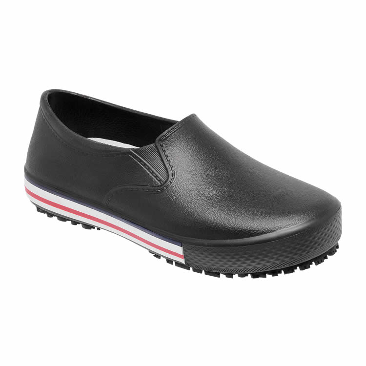 Calzado ocupacional confeccionado en EVA, ergonómico y ortopédico, realizado con materiales de excelente calidad, con suela de goma antiderrapante, con absorción de energía en el área del talón, resistente al aceite combustible y al detergente.