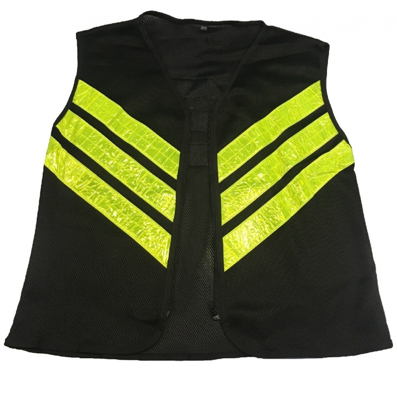 Chaleco calado negro con cierre y 3 cintas reflectivas