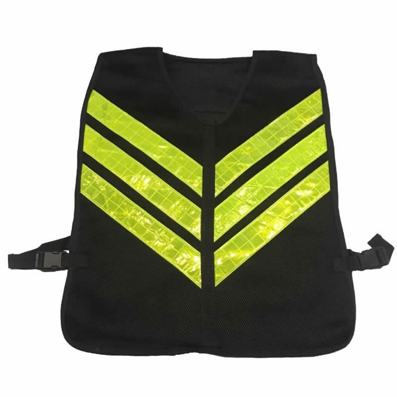 Chaleco calado negro con hebillasy 3 cintas reflectivas